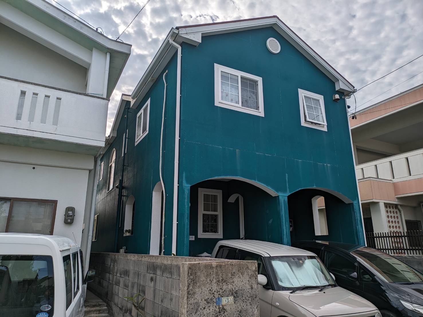 高圧洗浄から下地処理を行い、白系一色で綺麗に塗装をさせていただきました。