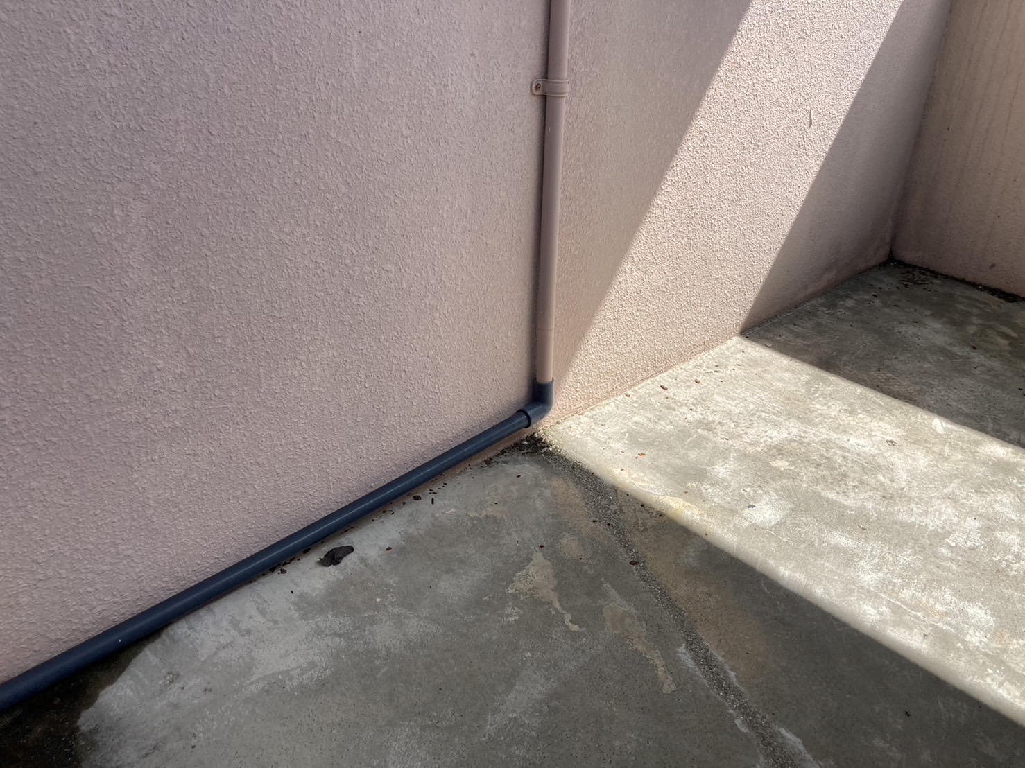 住宅のベランダや、アパートの廊下など、床から壁の境目で起こりやすい漏水。