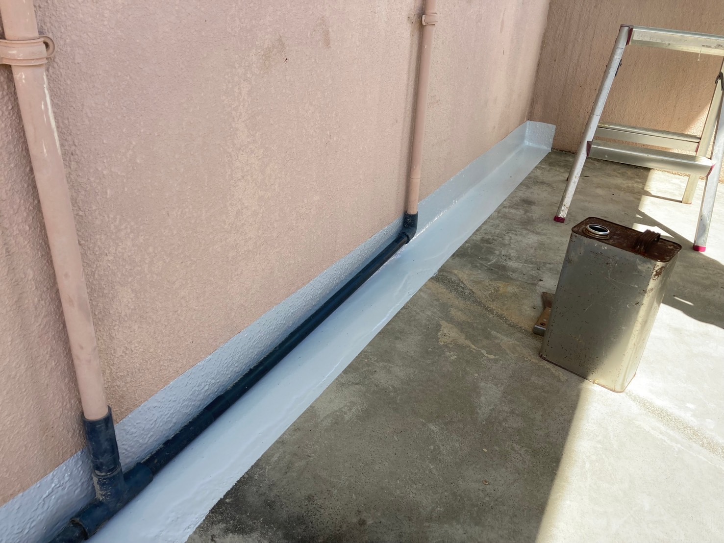 床から壁の立上り部分に部分防水工事を行いました。