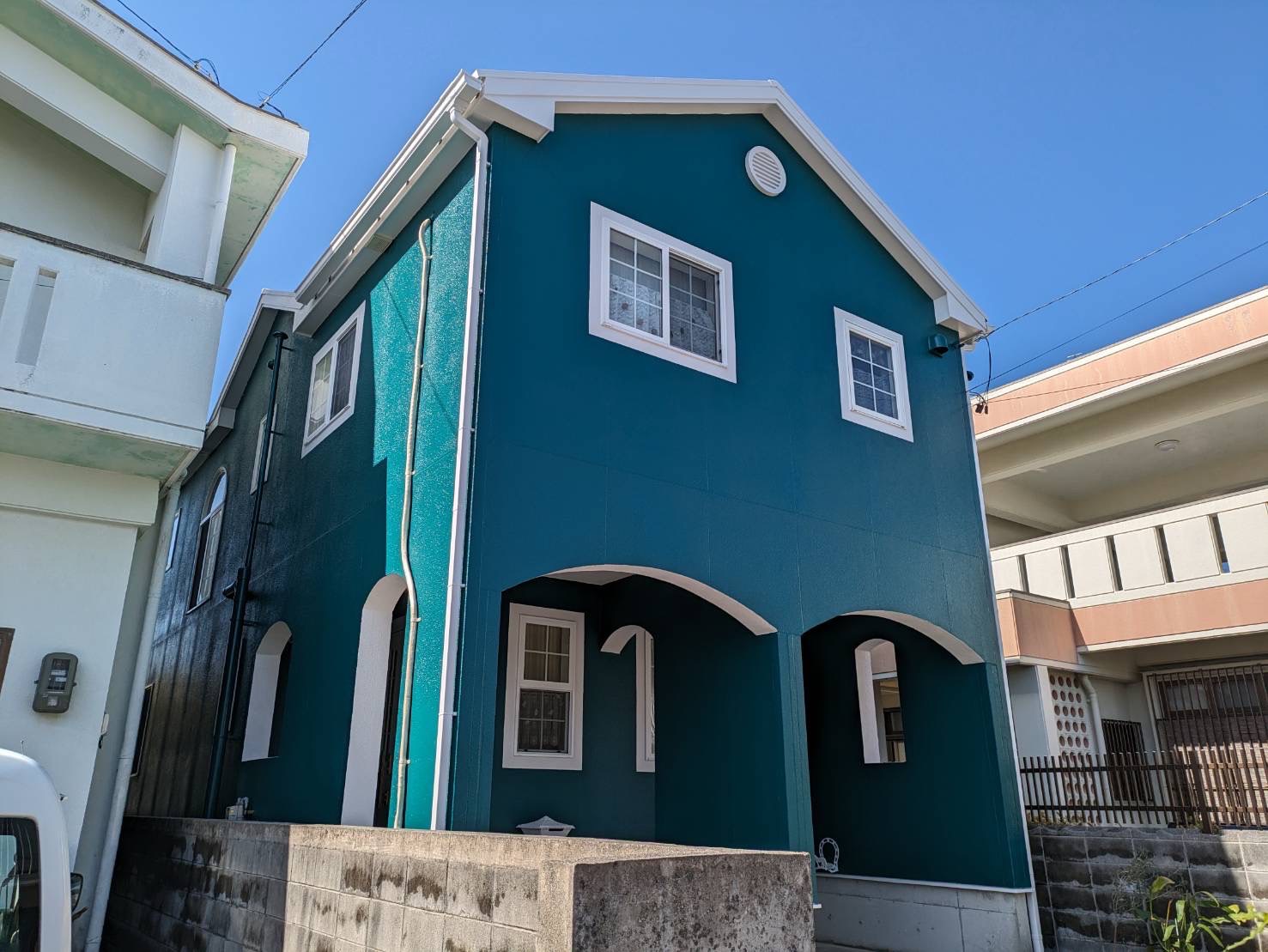 高圧洗浄・下地補修をし施工前と同じ白ベースで塗装させていただき、新築のような輝きを取り戻しました。