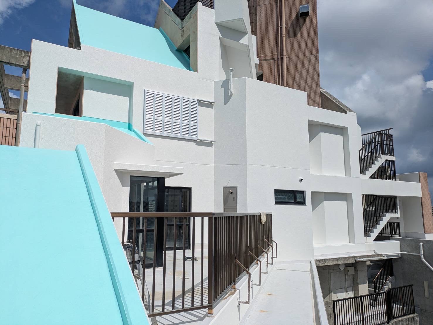 白ベースへの塗替で全体的に明るく仕上がりました。建物が大きく、完工まで時間がかかりましたが綺麗に仕上げてくれた職人さん!感謝です!そして完工までご協力いただきました、施主様、住民様!感謝、感謝です‼この度は当社へご依頼いただきありがとうございました。