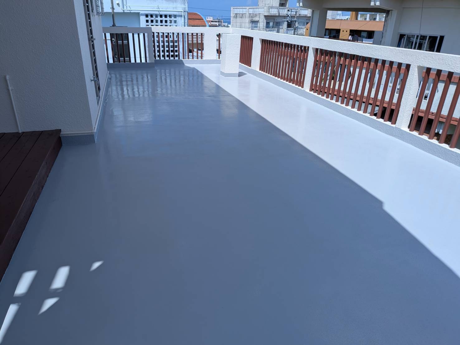 高圧洗浄・下地補修後、ウレタン防水メンテナンスを施しました。