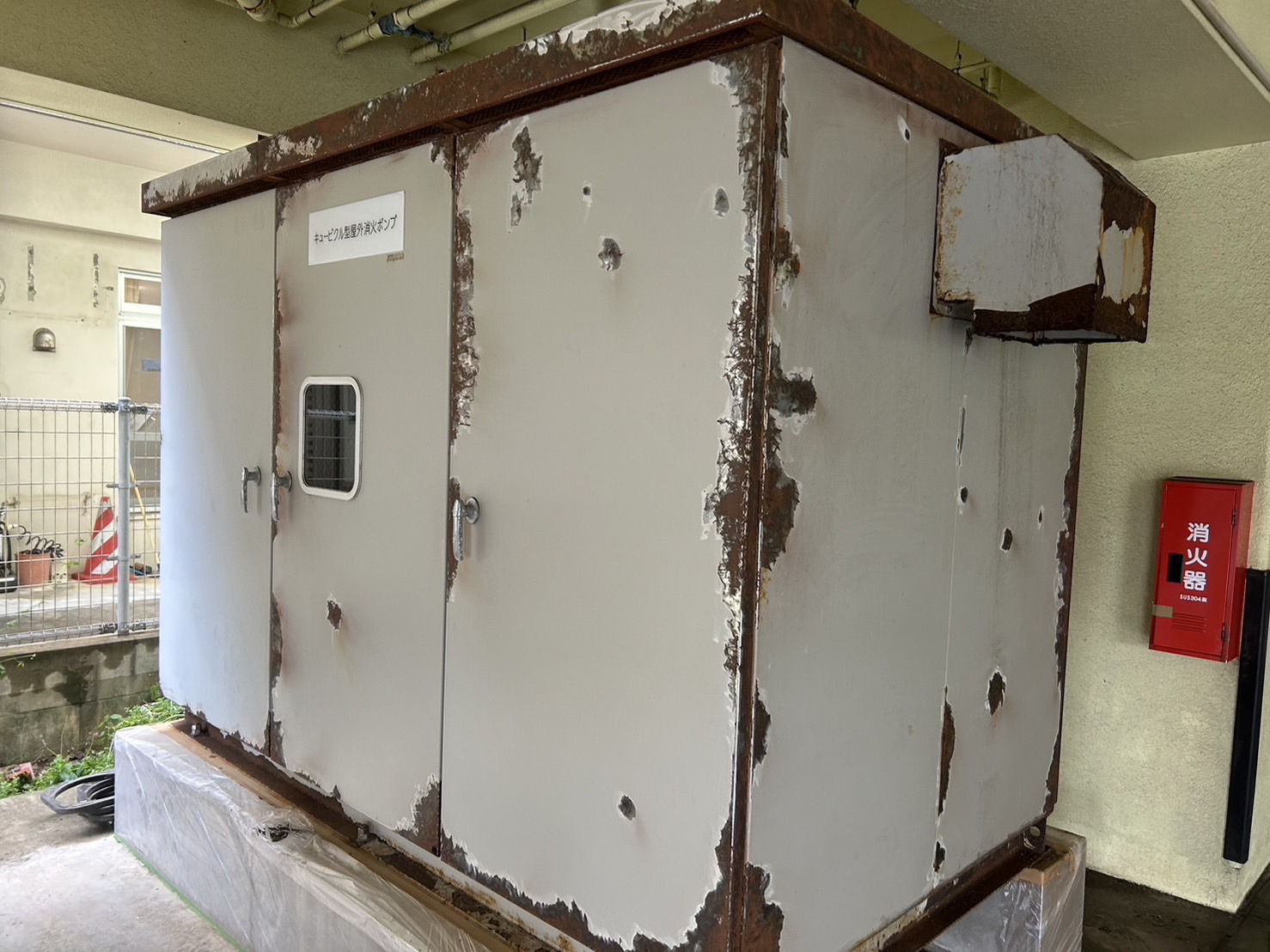 ポンプ室の壁は塗膜がはがれ、錆も発生しておりました。